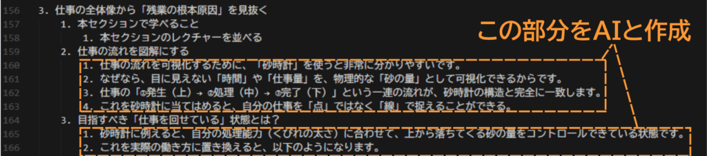 セクション1を作ったら、コース全体の流れと整合性をAIエージェントで確認・修正…