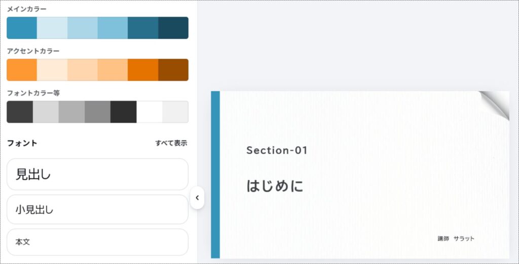 少し時間はかかりましたが、おかげでスライドを作り進める中で色やデザインがブレることはありませんでした。