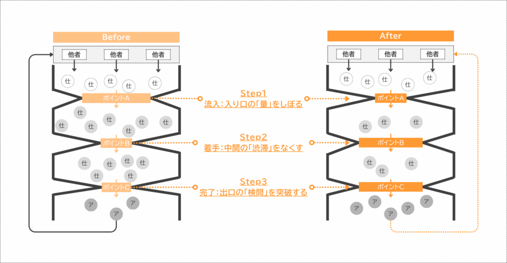 • 効率化しているのに、仕事が減らず、いつも時間に追われる